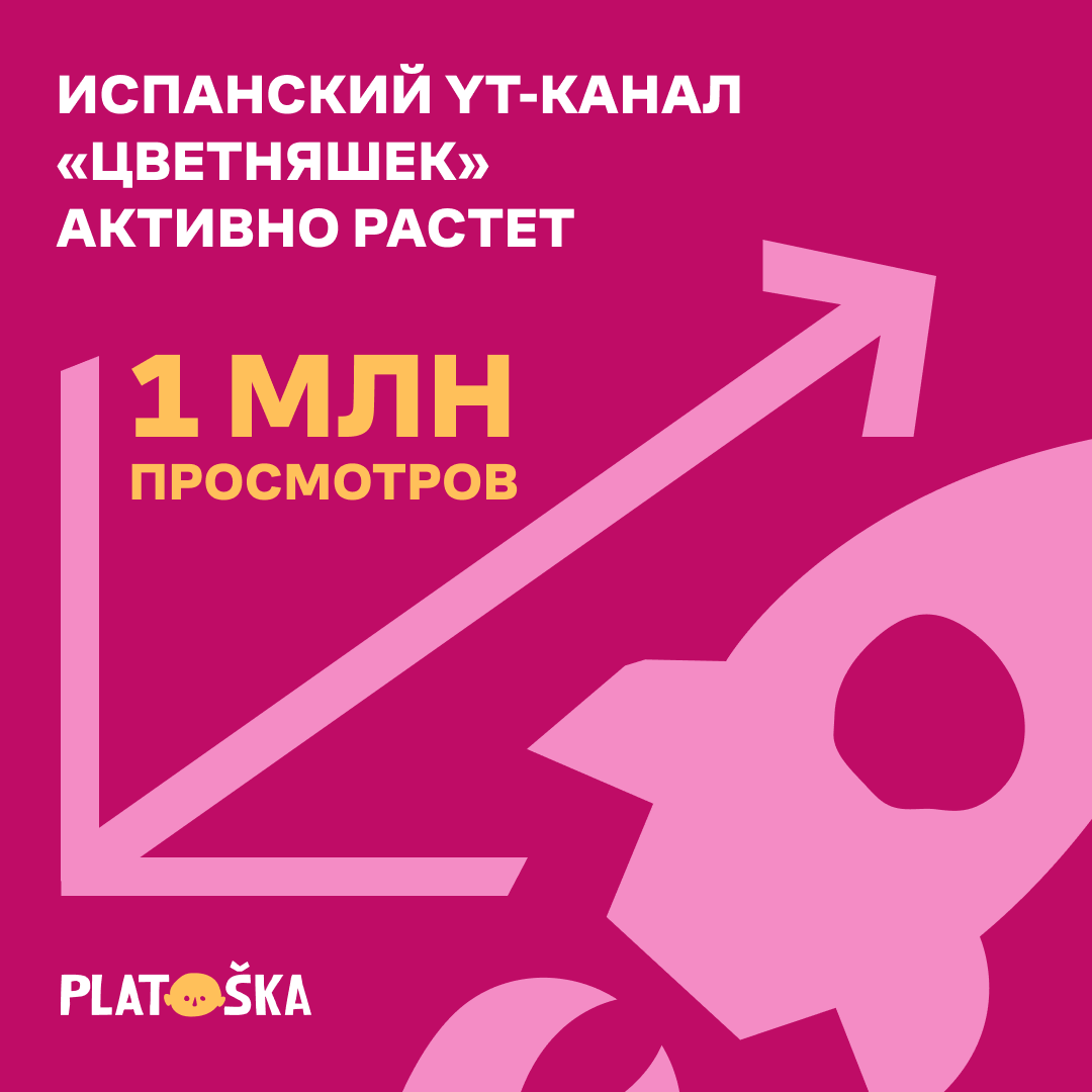 Анимационная студия Platoshka с радостью сообщает, что с момента запуска 1 апреля испанского YouTube-канала «Цветняшек» он продемонстрировал впечатляющий рост, завоевывая сердца юных зрителей в Испании и Латинской Америке.
