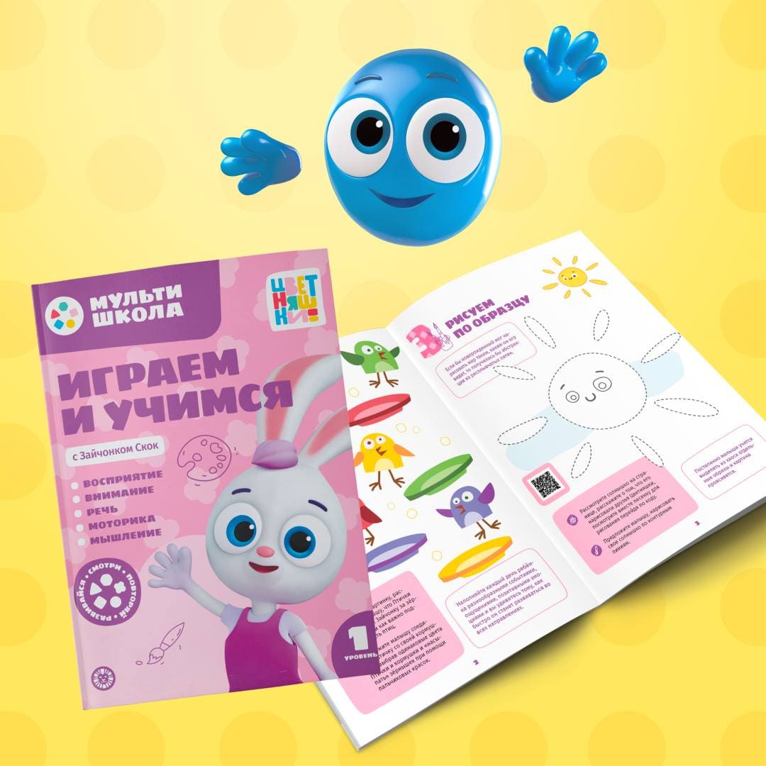 В пособиях «Мультишколы» есть также важные обращения к родителям, которые помогут взрослым выстроить процесс обучения и развития ребенка так, чтобы малышу было максимально интересно. Яркие наклейки, подходящие по размеру под детские пальчики, добавляют интерактивности. А чтобы образовательный процесс с «Цветняшками» проходил ещё более увлекательно, мы научили Яндекс.Алису включать нужные песенки к заданиям!