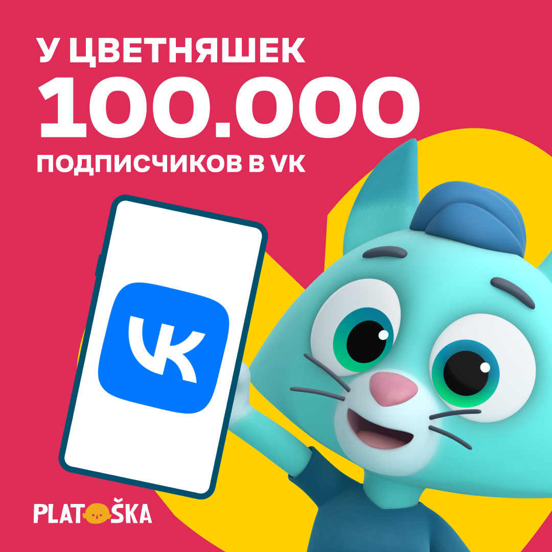 Анимационная студия Platoshka, создатель популярного мультсериала «Цветняшки», с гордостью сообщает о достижении важной отметки в 100 000 подписчиков в сообществе VK.