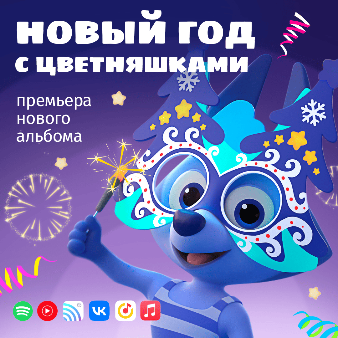 Новый музыкальный альбом «Новый год с Цветняшками» уже доступен на всех музыкальных платформах. Альбом открывает новый сингл «Цветняшек» – «Мандарины». Сингл который окутывает атмосферой праздника и наполняет все вокруг сладким цитрусовым ароматом. Под песни из альбома «Новый год с Цветняшками» будет очень трудно усидеть на месте! Все музыкальные композиции из альбома наполнены новогодним волшебством, и точно согреют ваши сердца, создав атмосферу праздника в доме. Обратите внимание на композицию «Если веришь в чудеса» – она записана артистами IOWA и Антоном Макарским.
