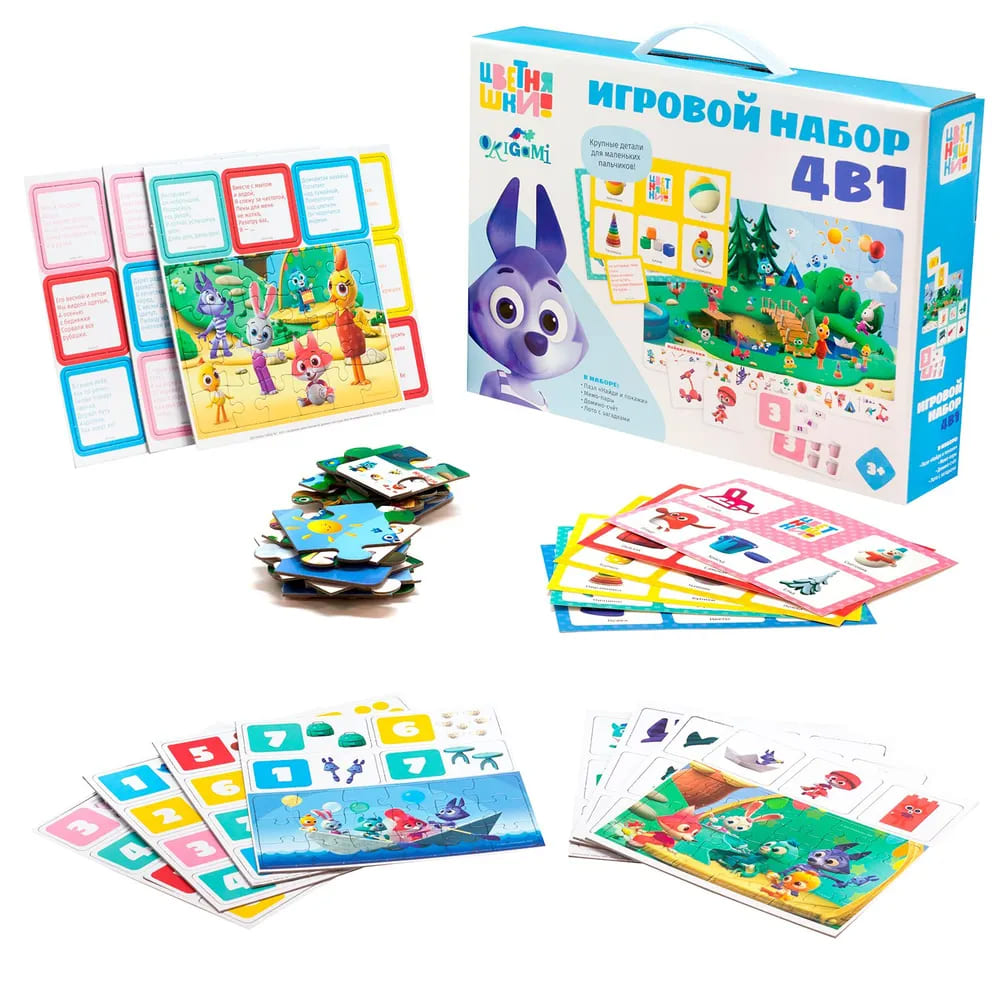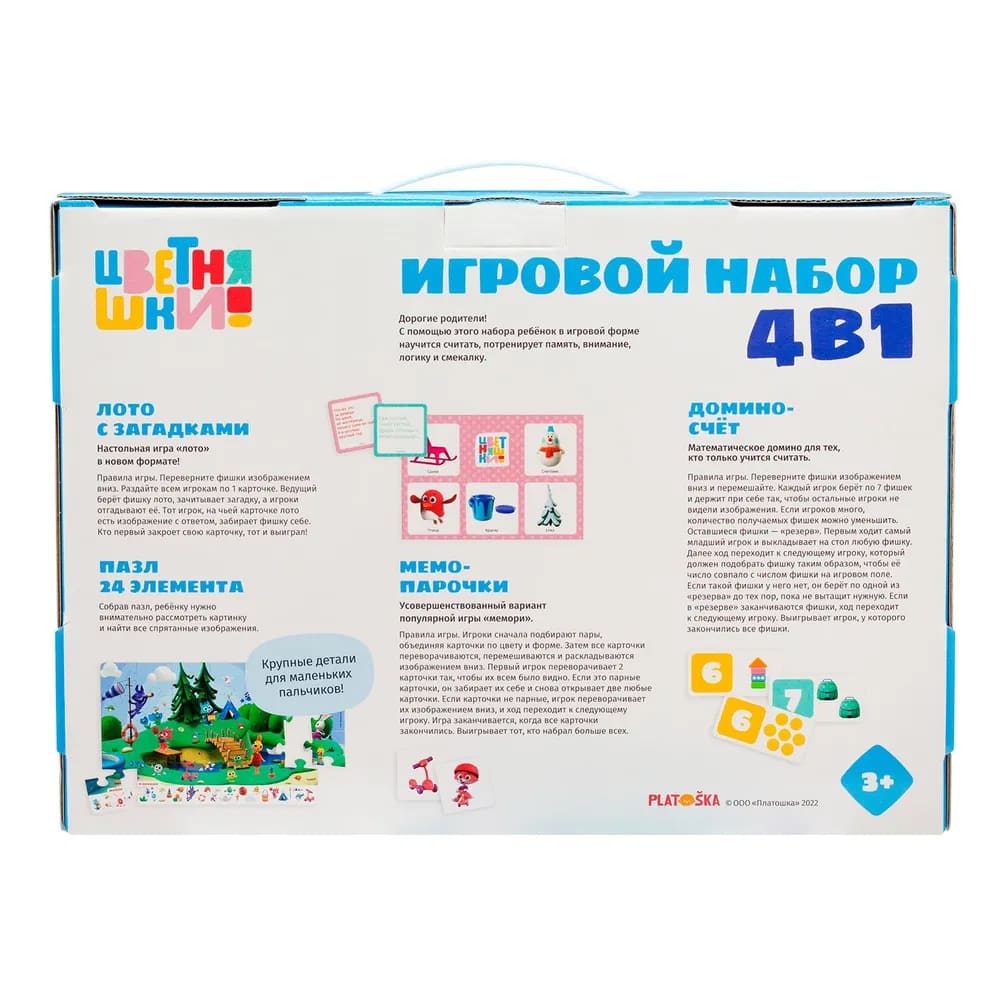 Производитель ОригамиОбучающий набор 3в1 «Цветняшки» - это набор игр, который поможет ребенку развить внимание, память и логику. В комплекте: лото с загадками, мемо-парочки, домино-счет и пазл на внимательность. Все игры развивают навыки сопоставления, счёта и памяти, а пазлы с яркими изображениями тренируют внимание. В наборе: 3 настольные игры, пазлы (24 элемента) и мини-пазлы. Материалы: картон, бумага. Для детей от 3 лет.