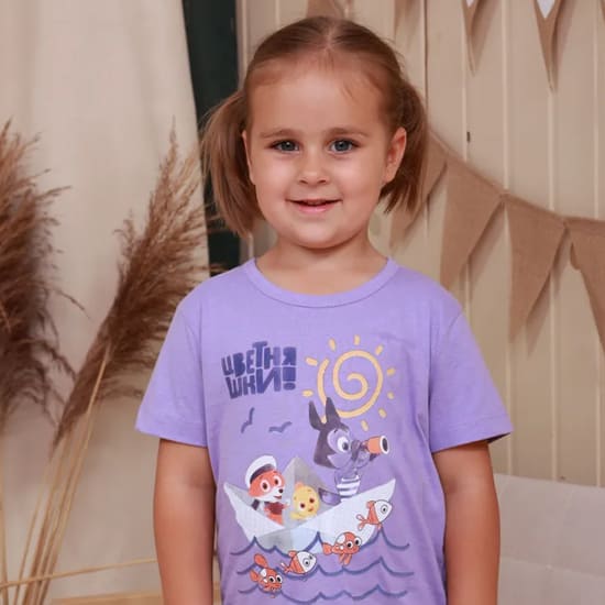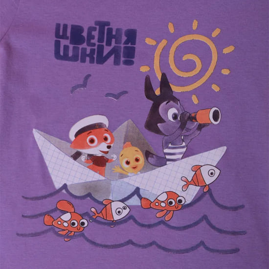 Производитель GreenLandХлопковая футболка с героями «Цветняшки» из натурального хлопка для детей от 3 до 6 лет. Футболка имеет свободный крой и удобный широкий горловой вырез.