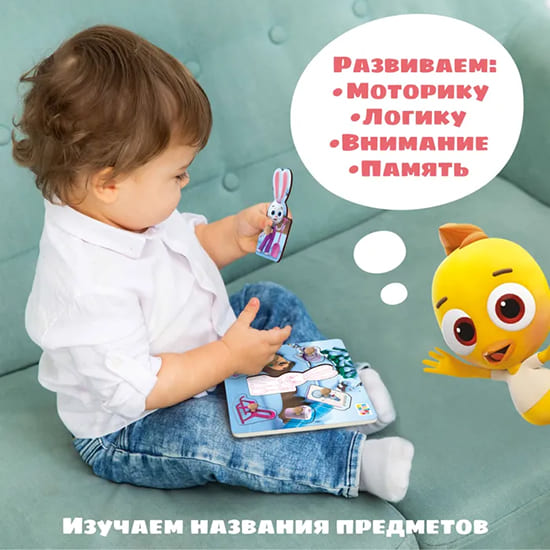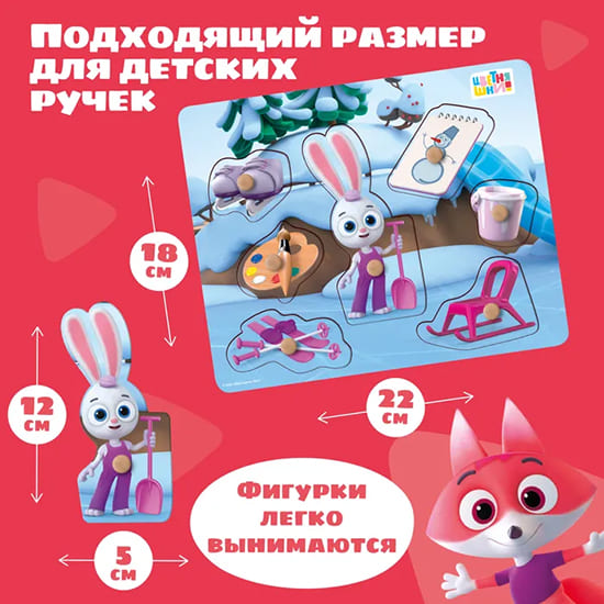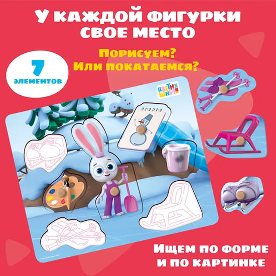 Производитель MapachaРазвивающая игра «Зайчонок Скок» от ТМ «MAPACHA» - набор с игровым полем и 7 фигурными вкладышами, изображающими зимние развлечения. Это игра, которая развивает логику, внимание и воображение, обучая детей различать зимние предметы и их предназначение. Вкладыши из натурального дерева идеально подходят для детских ручек. Размер игрового поля: 22х18х0,7 см. Рекомендованный возраст: 3+.