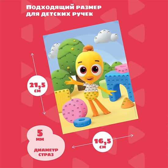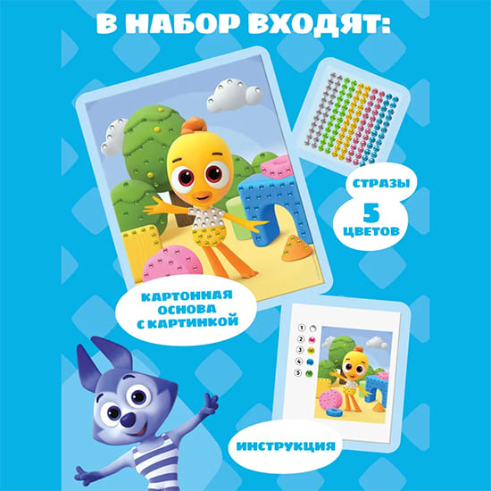 Производитель Наша игрушкаНабор для создания сверкающей аппликации «Цветняшки» - это увлекательный комплект, который помогает ребенку развивать творчество и моторику. В набор входят разноцветные стразы и картинка с изображением любимого персонажа. Ребенок наклеивает стразы по номерам, создавая блестящую картину. Размер картинки: 21,5х16,5 см. Диаметр страз: 5 мм. Изготовлено из полимерных материалов и картона. Рекомендованный возраст: 3+.