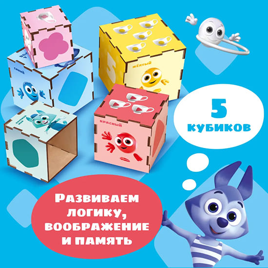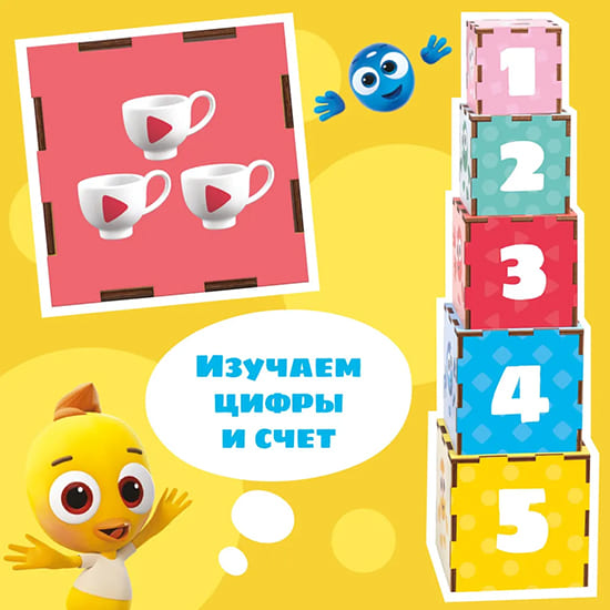 УМНЫЕ КУБИКИ «Цветняшки» 3В1: КУБИКИ, СОРТЕР, ПИРАМИДКА