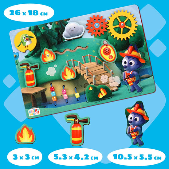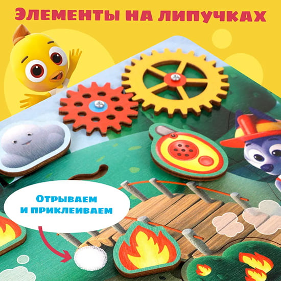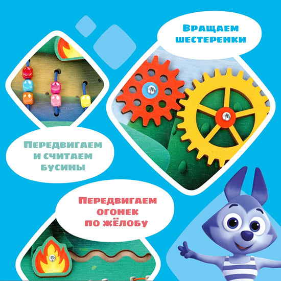 Производитель MapachaБизиборд «Цветняшки. Волчонок У тушит пожар» - это развивающая игрушка с фигурками на липучках, шестеренками и бусинками, которая помогает развивать мелкую моторику, внимание и логическое мышление.