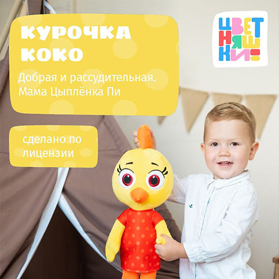 Производитель Смол ТойсМягкая игрушка «Курочка Коко» - это игрушка, вдохновленная героиней мультсериала «Цветняшки», которая развивает у детей социальные и интеллектуальные навыки. Изготовлена из мягкого плюша, Коко приятна на ощупь и безопасна для малышей. Игрушка способствует развитию взаимодействия и дружбы, а также служит уютным аксессуаром для детской комнаты.
