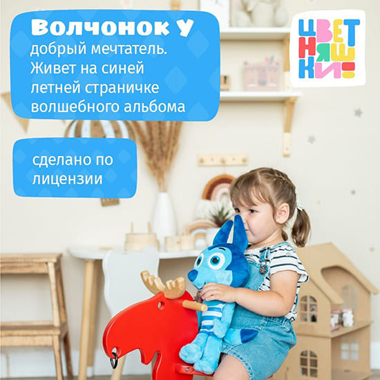 Производитель Смол ТойсМягкая игрушка «Волчонок У» - это персонаж мультсериала «Цветняшки», предназначенный для активных игр и развития сенсорных навыков. Изготовлена из качественного плюша, Волчонок У приятен на ощупь и безопасен для малышей. Игрушка используется в играх для развития фантазии и эмоций, а также добавляет уют в детскую комнату.