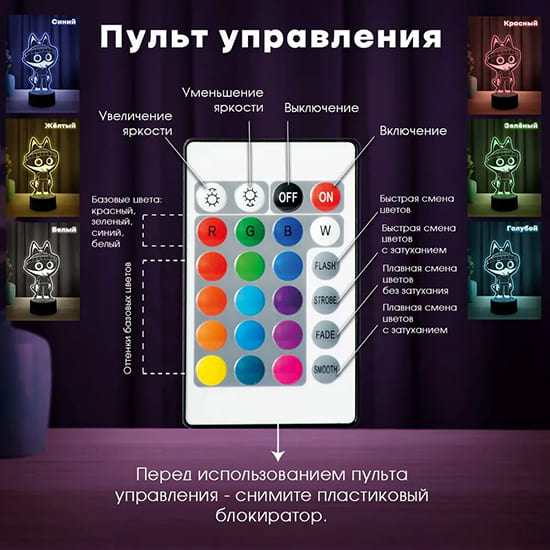 Производитель РМА БАШНЯ ТЕСЛЫНочник «Лисёнок Айяяй» - это ночник с персонажем из мультсериала 'Цветняшки', который дает 12 цветов свечения и несколько режимов переключения. Управление осуществляется сенсорной кнопкой или пультом (в комплекте). Питание от 3 батареек АА или через USB. Размер: 22,5х11,2х8 см. Этот ночник будет прекрасным подарком для детей, создавая уют и волшебство.