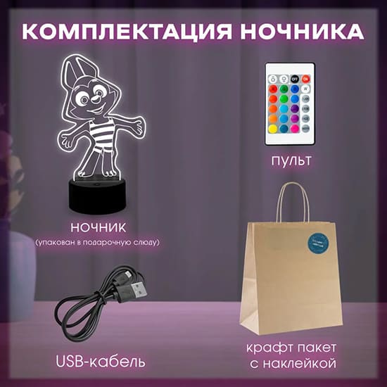 Производитель РМА БАШНЯ ТЕСЛЫНочник «Котёнок Мур» - это ночник с персонажем из мультсериала 'Цветняшки', который дает 12 цветов свечения и несколько режимов переключения. Управление осуществляется сенсорной кнопкой или пультом (в комплекте). Питание от 3 батареек АА или через USB. Размер: 22,5х13,2х8 см. Ночник идеально подойдет для подарка на Новый год, Рождество или день рождения.