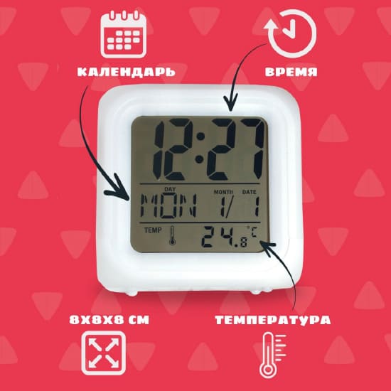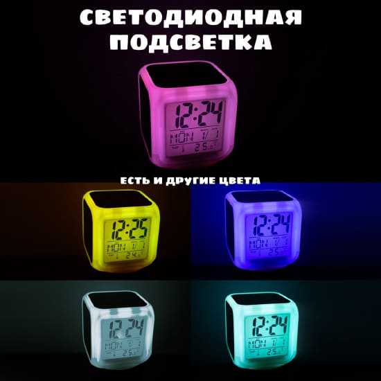 Производитель РМА БАШНЯ ТЕСЛЫСветодиодные настольные часы «Лисёнок Айяяй' - это оригинальный будильник в виде куба с изображением персонажа из мультсериала «Цветняшки». Часы имеют 7 мягких цветов подсветки, меняющихся каждые 5 секунд, и показывают время, дату, температуру и имеют функцию будильника. Размер: 8х8х8 см. Работает от 3 батареек типа ААА (в комплект не входят). Отличный подарок для детей и взрослых.