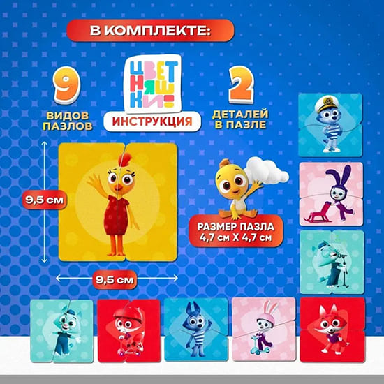 Производитель WoodLand ToysПазлы-половинки деревянные «Цветняшки» набор 9 штук WOODLANDTOYS - пазлы с крупными деревянными деталями, которые развивают мелкую моторику, память и логику. Игрушка помогает ребенку учить новые слова, тренировать пальчиковый захват и улучшать внимание. Пазлы с героями «Цветняшки» - это отличный обучающий инструмент для малышей, который станет любимой игрушкой.