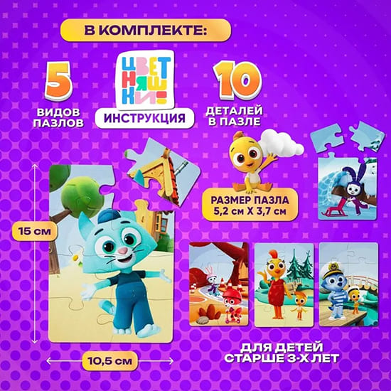 Деревянные пазлы Набор «Цветняшки» 5 шт